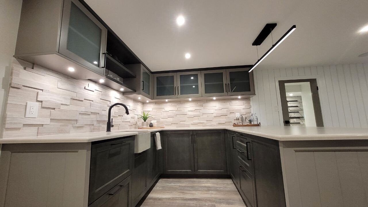 Puck lights install, under cabinet lights install , one plus point in drywall, fix back drywall, relocate dish washer electrically to a new spot.